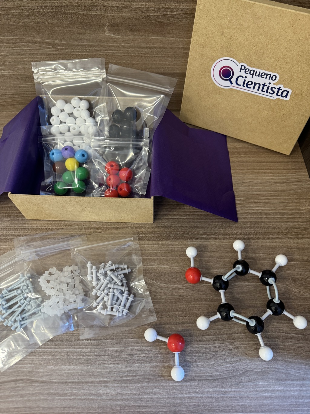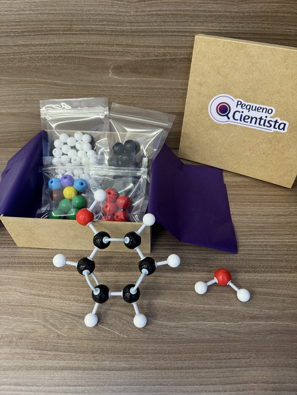 O Modelo Molecular vai organizado em uma caixa em MDF.